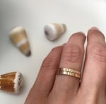 Each band is made from round wire that I hammer flat. Each ring will be slightly different from the others, as each pieces is one of a kind, making it that much more special.