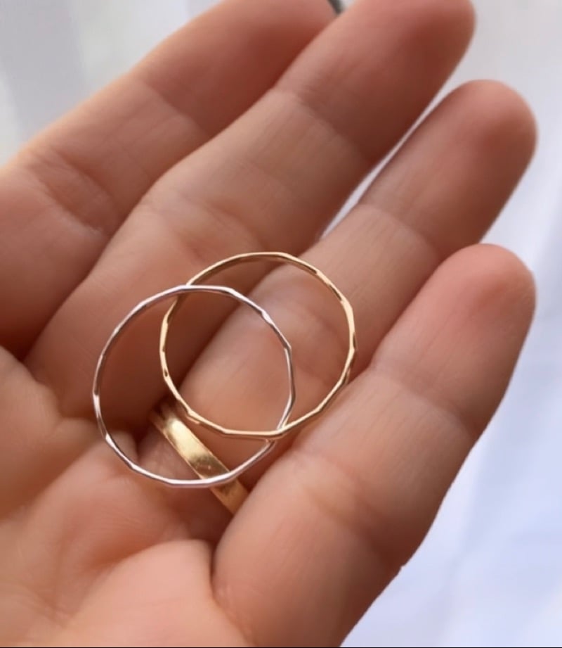 As of now, I am not mixing metals in this ring set as the gold oxidizes the silver quickly!