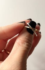 The Linked-Up Ring set includes two Interlocking Hammered Rings; hand-forged, soldered, hammered, and tumbled to a pretty shine.
