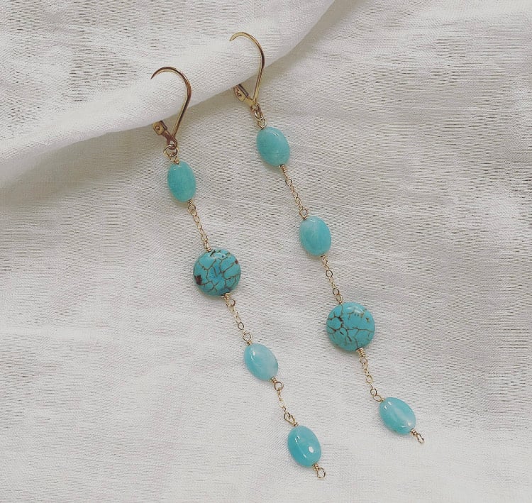 One of a kind, Turquoise shoulder duster earrings. 14K Gold-filled.